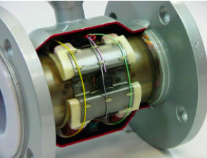 由此可見,水冷卻器用水流量計正常運行需要有穩定的磁場,而磁場正是靠傳感器線圈內的 勵磁電流來產生的。勵磁線圈如圖2所示。