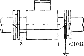 (2)傳感器安裝在塑料管道或內(nèi)壁有絕緣涂層、襯里、漆層的金屬管道上的接地