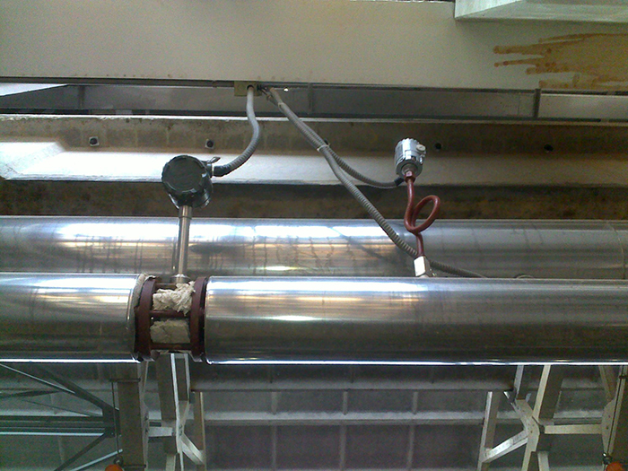 4.渦街流量計應盡量避免安裝在振動較強的管道上。若必須安裝,須在其上下游2D處加設管道緊固裝置,并加防振墊,加強抗振效果。