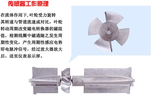 渦輪流量計采用渦輪進行測量。它先將流速轉換為渦輪的轉速,再將轉速轉換成與流量成正比的電信號。這種流量計用于檢測瞬時流量和總的積算流量,其輸出信號為頻率,易于數字化。圖中感應線圈和永久磁鐵一起固定在殼體上。當鐵磁性渦輪葉片經過磁鐵時,磁路的磁阻發生變化,從而產生感應信號。信號經放大器放大和整形,送到計數器或頻率計,顯示總的積算流量。同時將脈沖頻率經過頻率-電壓轉換以指示瞬時流量。葉輪的轉速正比于流量,葉輪的轉數正比于流過的總量。渦輪流量計的輸出是頻率調制式信號,不僅提高了檢測電路的抗干擾性,而且簡化了流量檢測系統。它的量程比可達10:1,精度在±0.2%以內。慣性小而且尺寸小的流量計的時間常數可達0.01秒。
