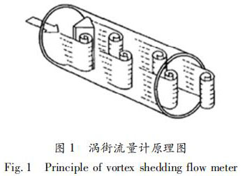把一個阻流體垂直插入管道中,流體會繞過阻流體流動,并在阻流體兩側形成有規則的旋渦列,左右兩側的旋渦旋轉方向相反。蒸汽流量計原理如圖 1 所 示。這種旋渦列稱為卡門渦街。根據卡門的研究,只有當渦列寬度 h 與同列相鄰兩旋渦的間距 l 之比滿足某個比例時,旋渦列才可以穩定存在。比如,對圓形阻流體,要求兩者比值為 0. 281。