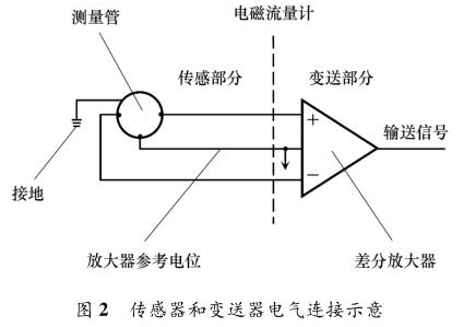 乙醇管道流量計主要由兩部分組成:流量傳感器和信號變送器,如圖 2 所示。傳感器上的勵磁線圈接受變送器傳輸來的勵磁電流產生磁場,輸出感應電動勢信號;信號變送器則將感應電動勢信號轉換為流量信號或模擬量信號送至控制系統。乙醇管道流量計按組成方式分為一體式和分體式。乙醇管道流量計穩定工作另外一個重要條件是接地。當流體流動穿過磁場時,以導電流體本身作為參考電位,在測量管一側電極產生正電勢,另一側產生負電勢,形成電勢差。但此電動勢信號一般只有幾毫伏,易受外界干擾。為防止干擾,將參考電位接入大地作為零電位,保證傳感器輸出精確穩定的信號。傳感器和轉換器的接地端必須與被測介質同電位,才能構成對稱的輸入輸出回路。