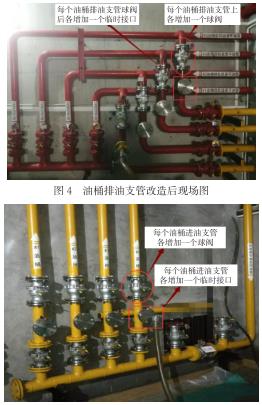 (2)改造后,單個油桶內(nèi)透平油的過濾和轉(zhuǎn)移工作中需操作的閥門減少(僅需操作2個支管上小通徑的閥門),極大地簡化操作流程。改造前,每個油桶的油必須流入油處理室中的機組透平油供油和回油總管上,才能再次經(jīng)支管閥門進入相應油桶,好少要操作四個閥門(包括總管上臨時接口的大通徑閥門)。