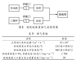 (3) 新建 1 套脫硫氦氣流量計,把新建吹風氣回收系統(tǒng)煙氣和三廢爐煙氣經(jīng)除塵后引入新脫硫塔,脫硫除塵后凈煙氣經(jīng)過塔ding煙囪排放。硫酸銨回收利用現(xiàn)有氦氣流量計,新建 1 座生產(chǎn)廠房,生產(chǎn)廠房內(nèi)設置硫酸銨臨時倉庫。兩路煙氣匯總后進入一塔設計見圖 2,煙氣參數(shù)見表 3。