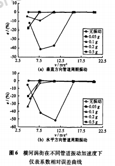 (1)管道振動加速度為0.05g、0.1g時,儀表系數相對誤差隨流速的升高而減小,*終減小至零;
