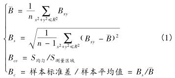 為了詳細(xì)的獲得井水流量計勵磁線圈及T型磁芯變化對流量計測量區(qū)域內(nèi)部磁場強度分布的影響情況,引入樣本平均值、樣本標(biāo)準(zhǔn)差、變異系數(shù)、磁場均勻度、感應(yīng)電勢值等磁場評價指標(biāo)分析傳感器勵磁線圈不同軸向長度時測量區(qū)域內(nèi)部磁場分布情況,如式(1)所示。式中,B為樣本平均值;B s為樣本標(biāo)準(zhǔn)差;B cv為樣本磁場均勻度;B c為樣本變異系數(shù)。在這4個磁場評價指標(biāo)中,樣本平均值越大越好,樣本標(biāo)準(zhǔn)差越小越好,磁場均勻度越大越好,變異系數(shù)越小越好。
